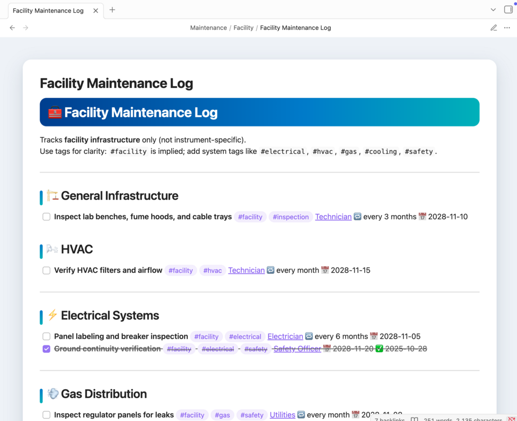 The Lab Operations Tool turns Obsidian into a structured operations hub for applied sciences and technical labs.